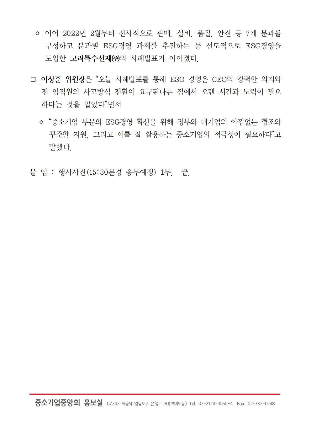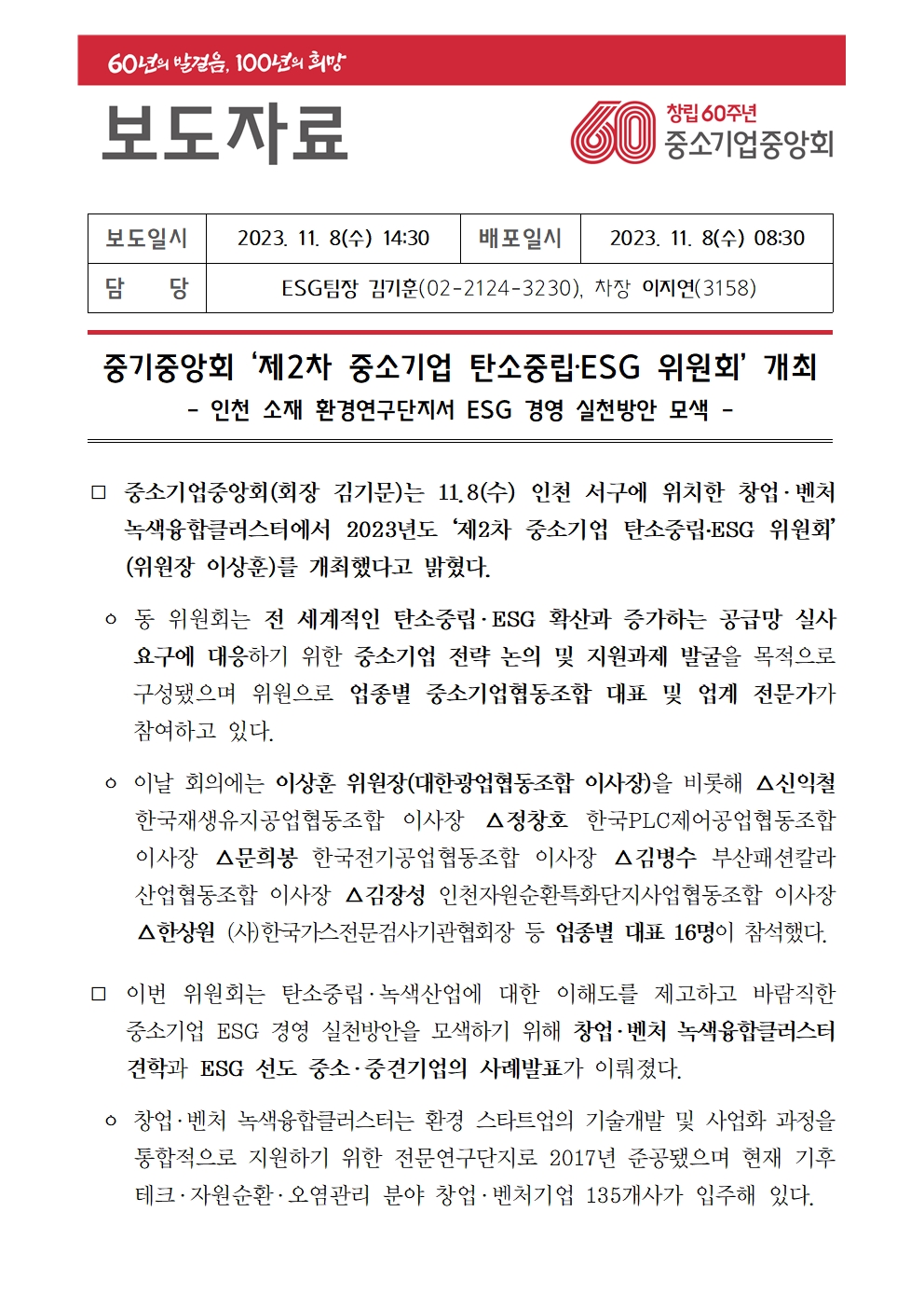 중기중앙회 '제2차 중소기업 탄소중립·ESG 위원회' 개최