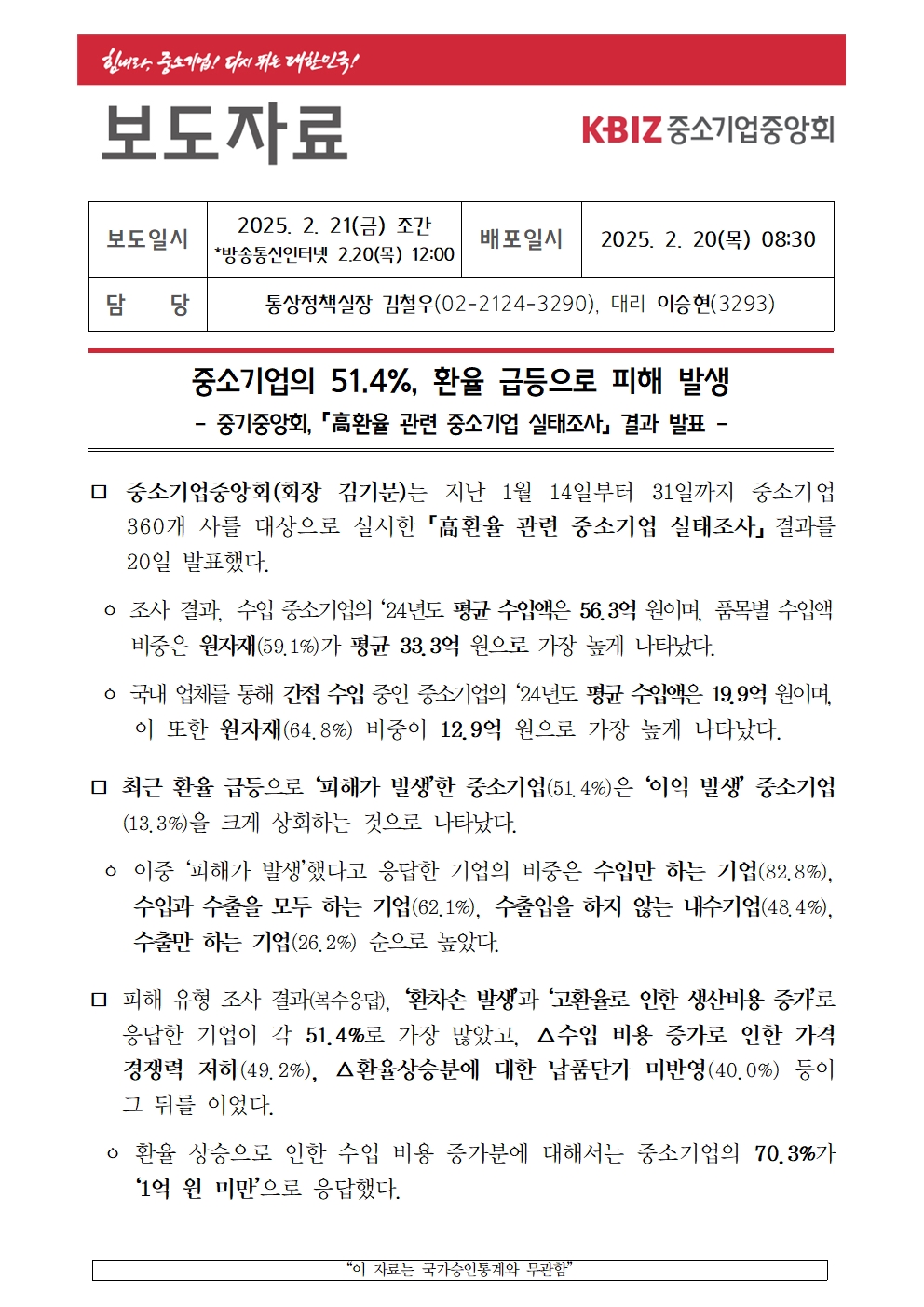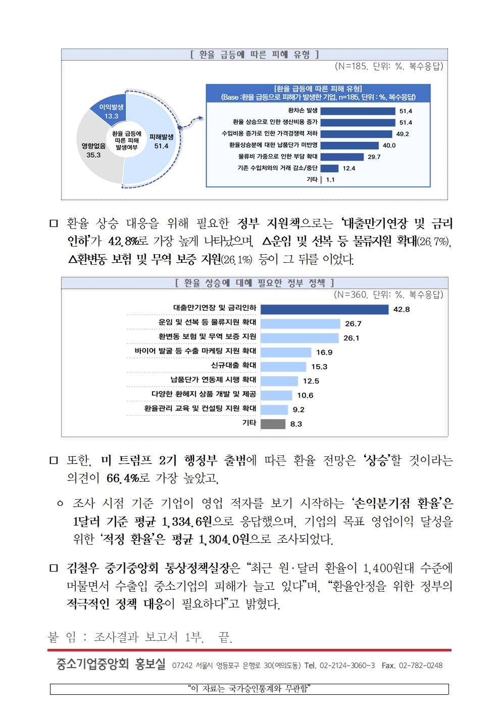 중소기업의 51.4%, 환율 급등으로 피해 발생