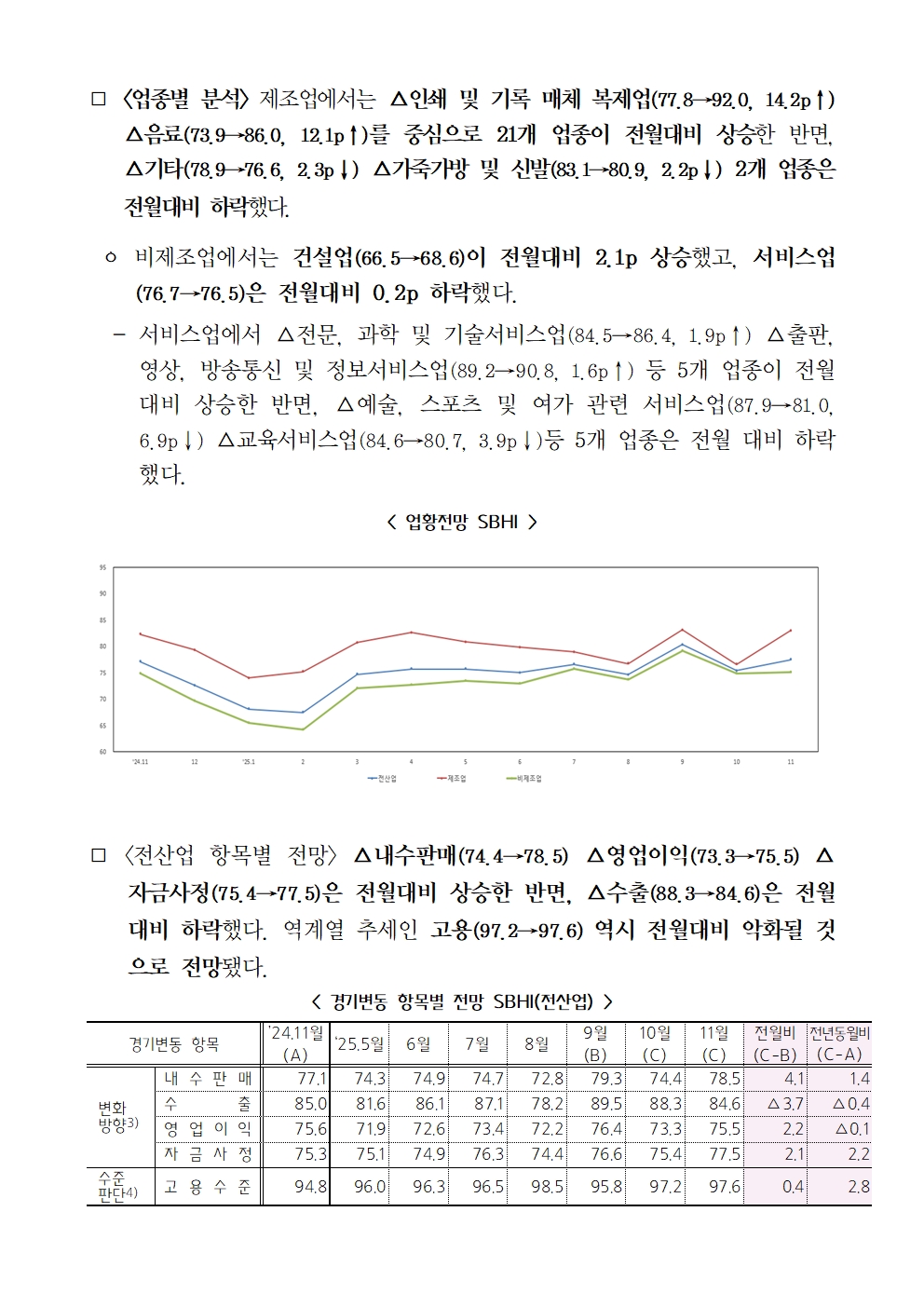 2025년 11월 中企 경기전망지수 77.5, 전월대비 2.1p 상승