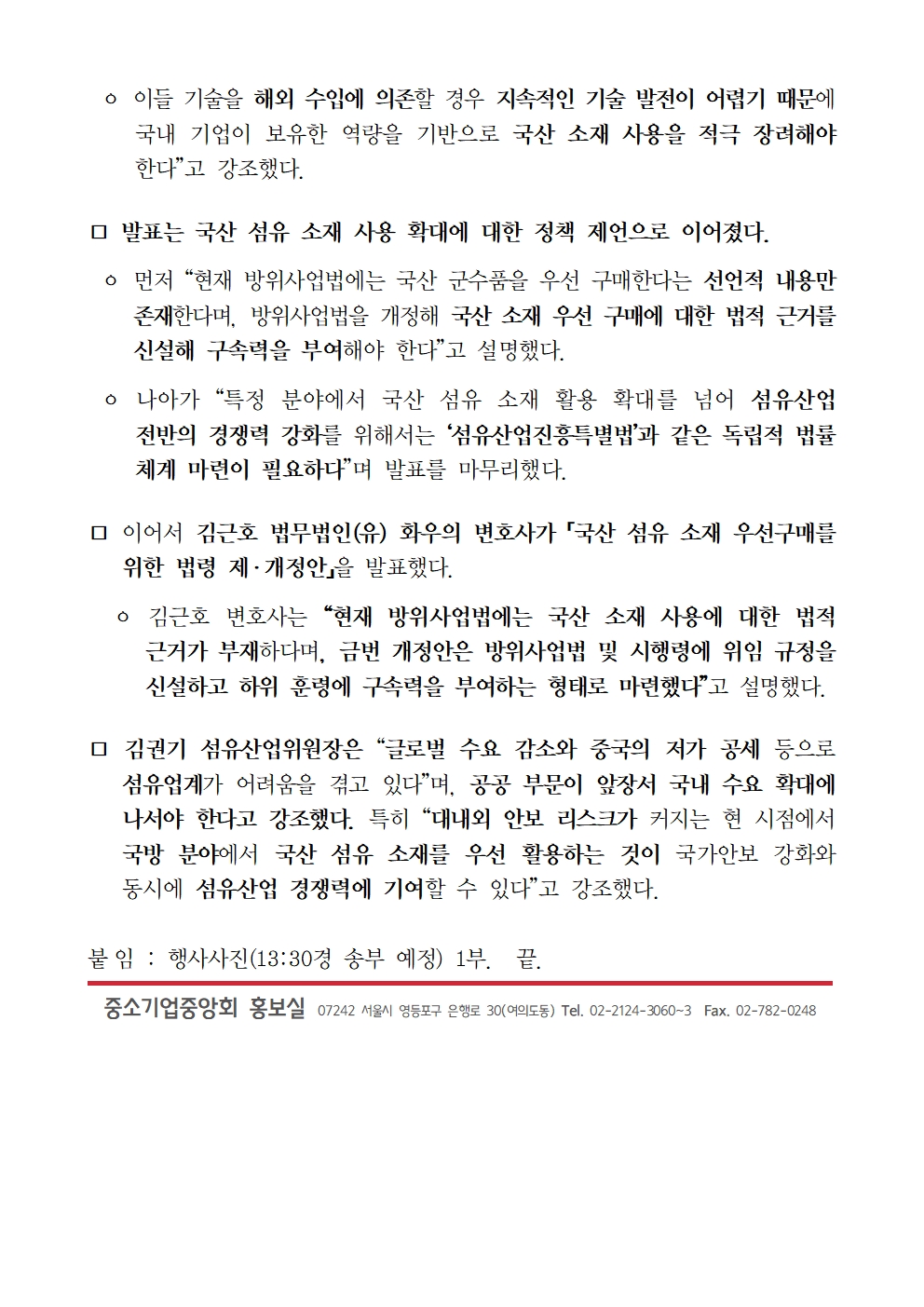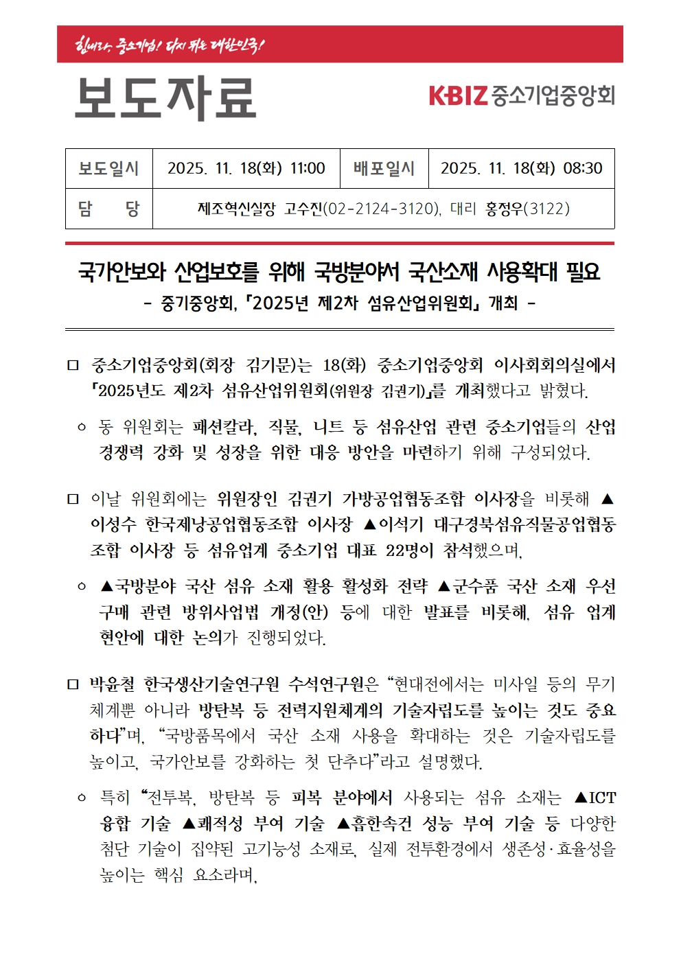 국가안보와 산업보호를 위해 국방분야서 국산소재 사용확대 필요