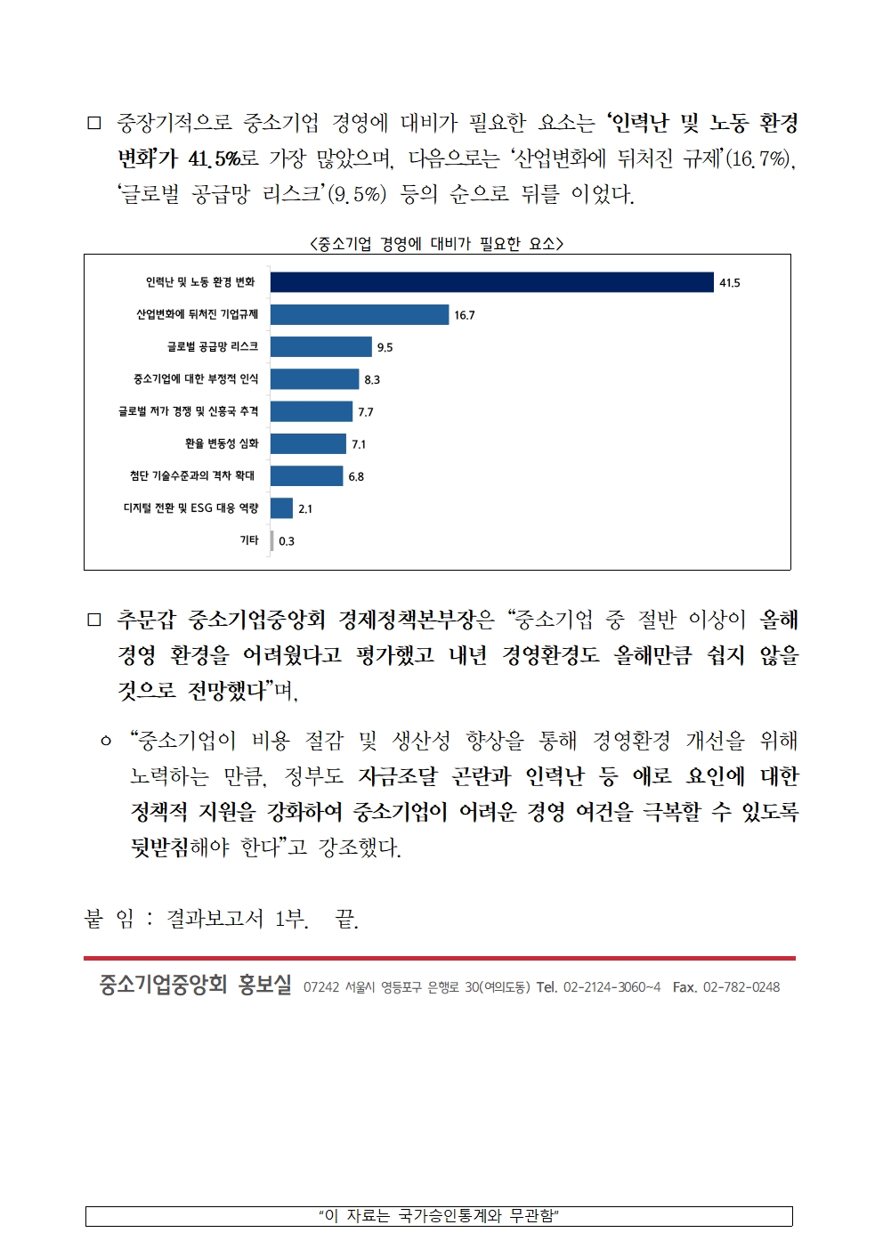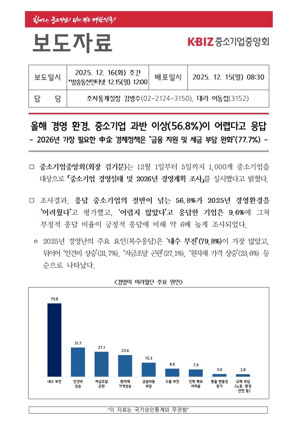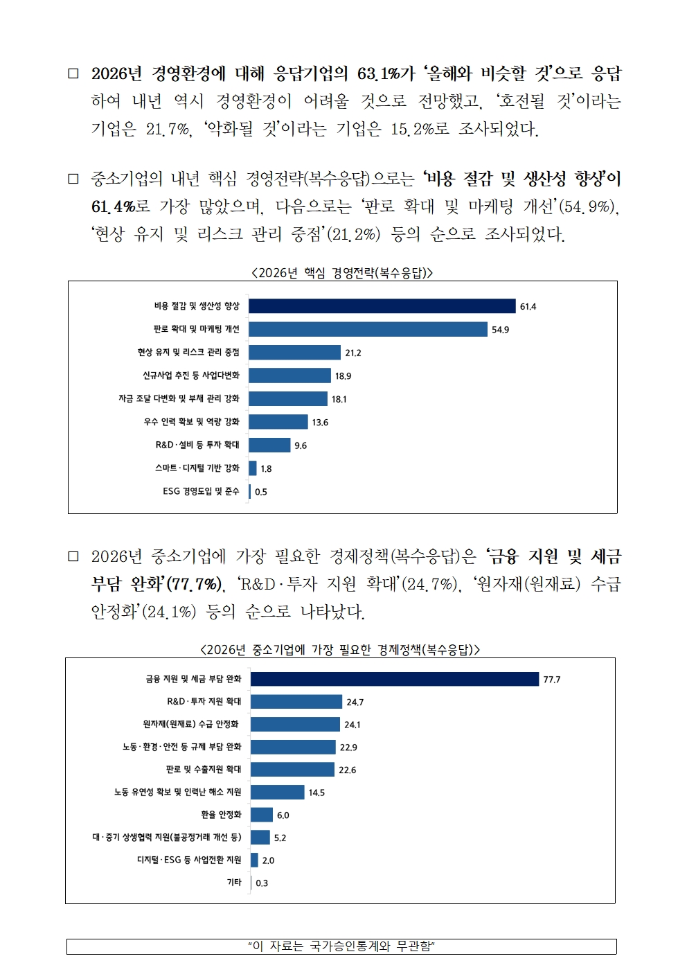 올해 경영 환경, 중소기업 과반 이상(56.8%)이 어렵다고 응답