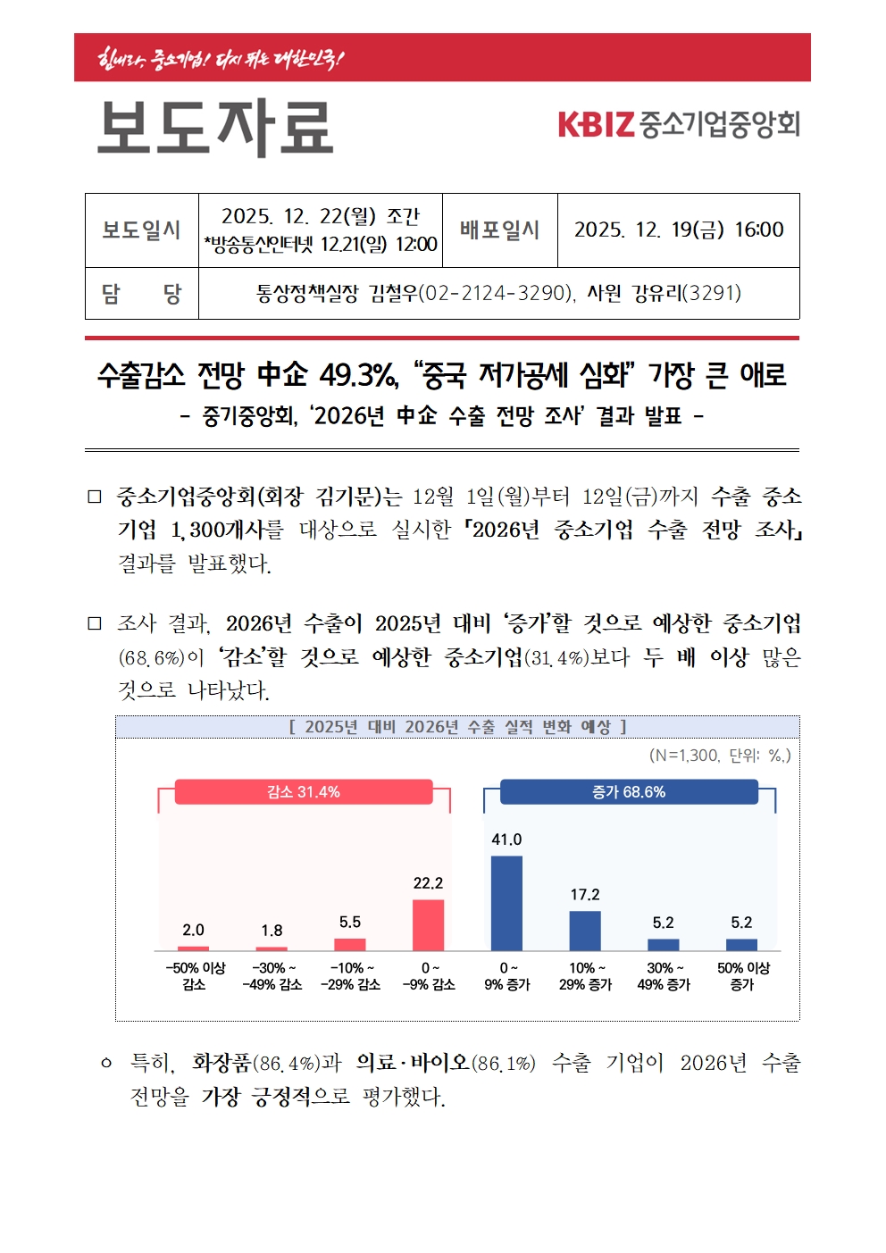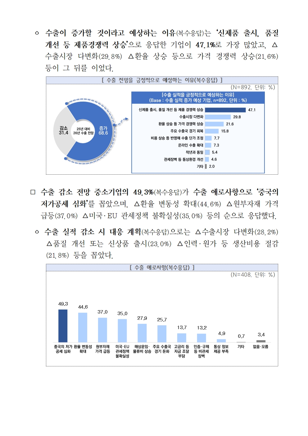 수출감소 전망 中企 49.3%, “중국 저가공세 심화” 가장 큰 애로