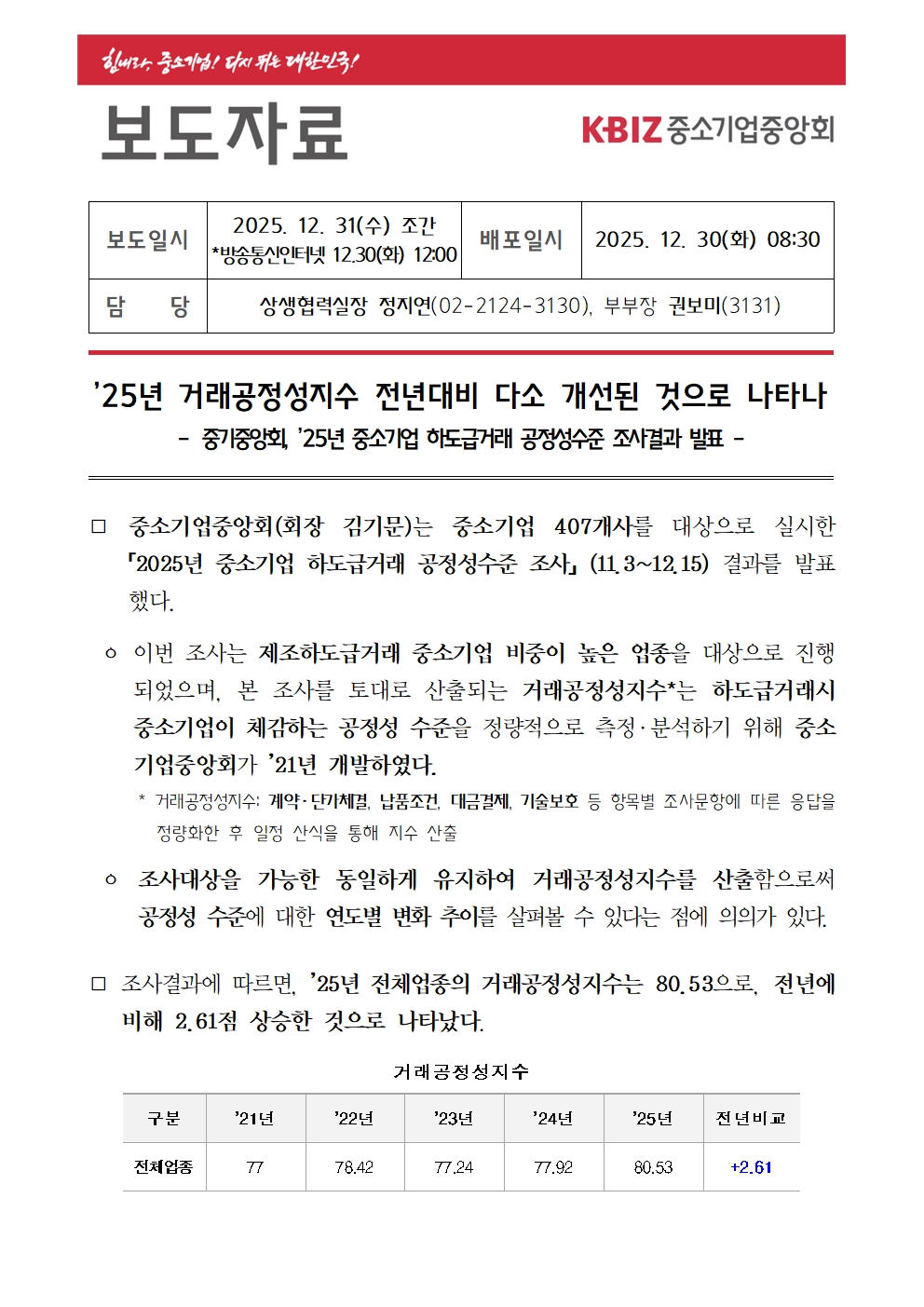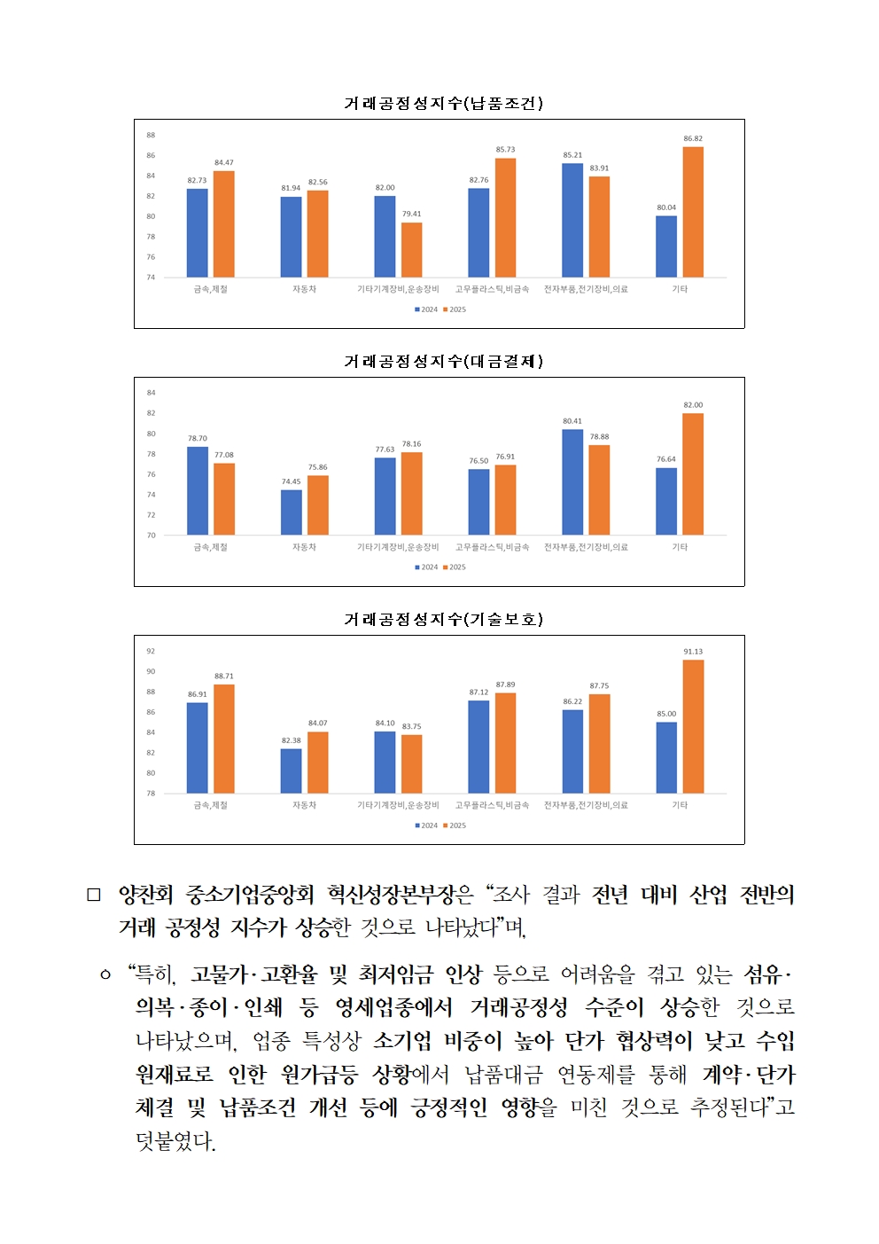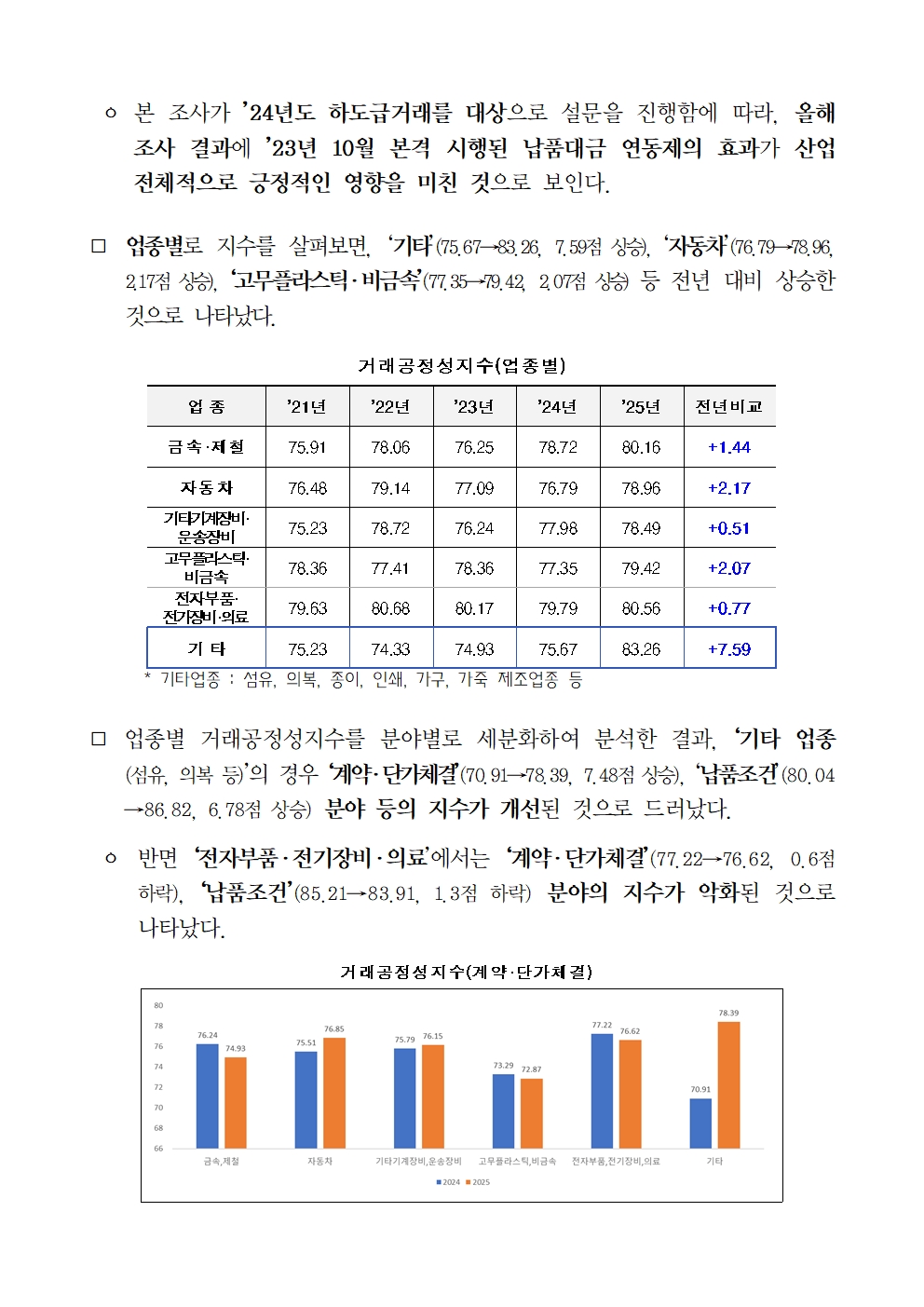 ’25년 거래공정성지수 전년대비 다소 개선된 것으로 나타나