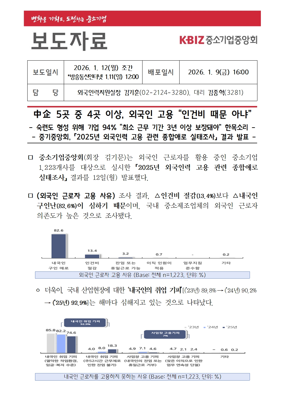 中企 5곳 중 4곳 이상, 외국인 고용 “인건비 때문 아냐”