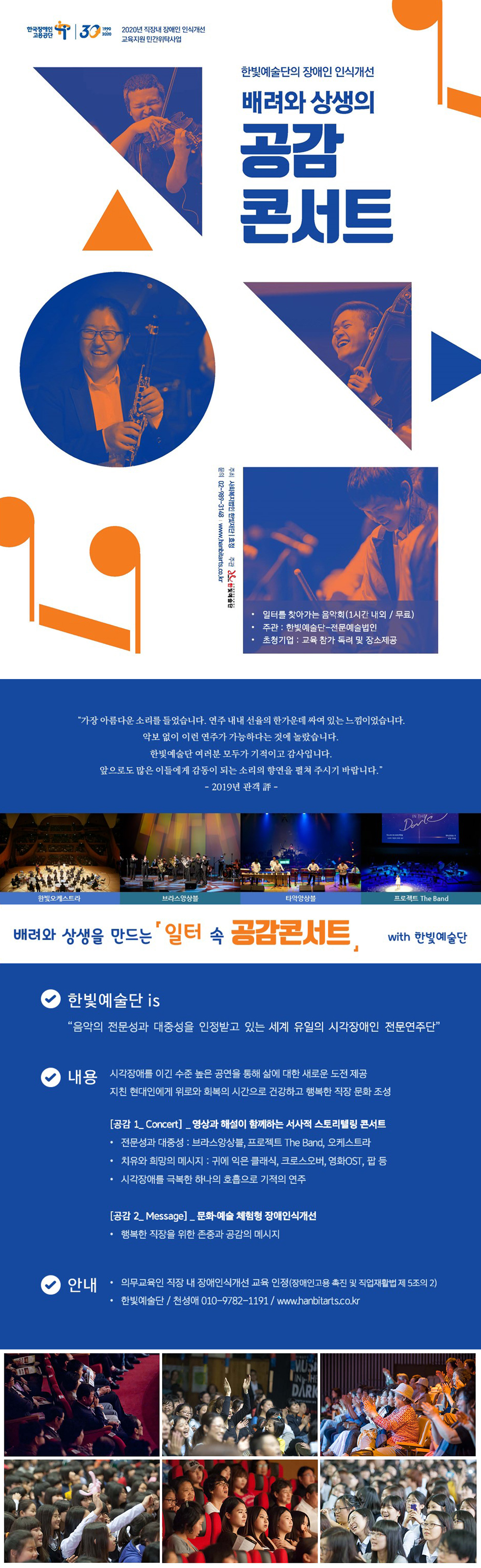 □ 신청 및 문의 : 한빛예술단 / 직장 내 장애인식개선 교육 담당 02-989-3148 / www.hanbitarts.co.kr