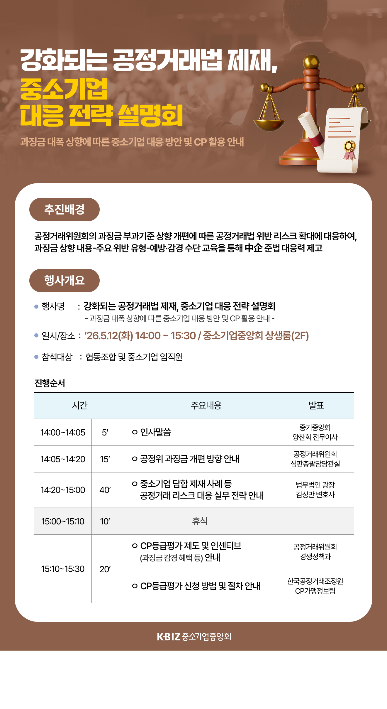 공정거래위원회의 과징금 부과기준 상향 개편에 따른 공정거래법 위반 리스크 확대에 대응하여, 과징금 상향 내용-주요 위반 유형-예방·감경 수단 교육을 통해 중소기업의 준법 대응력 제고